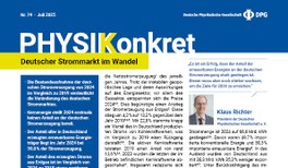 Ausgabe 74 | Juli 2025 | „Es ist ein Erfolg, dass der Anteil der erneuerbaren Energien an der deutschen Stromerzeugung stark gestiegen ist. Dieser muss aber noch stärker wachsen, um die Ziele für 2030 zu erreichen.“ - Klaus Richter (DPG-Präsident)mehr...